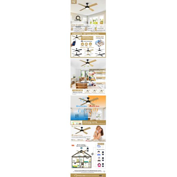 Keywords: ceiling fan, fan with light, 52 inch ceiling fan, DC motor ceiling fan, MDF blade ceiling fan, acrylic lampshade ceiling fan, remote control ceiling fan