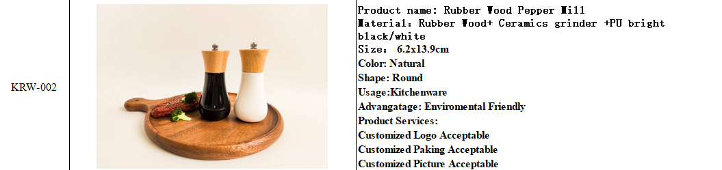 | Material: | Rubber Wood, Ceramics Grinder, PU Bright |