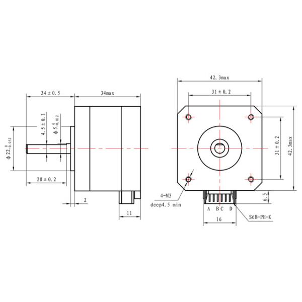 | 42SHD4003 | 0.26N.m | 1.8° | 34mm | D Shaft-20mm | 0.4A |