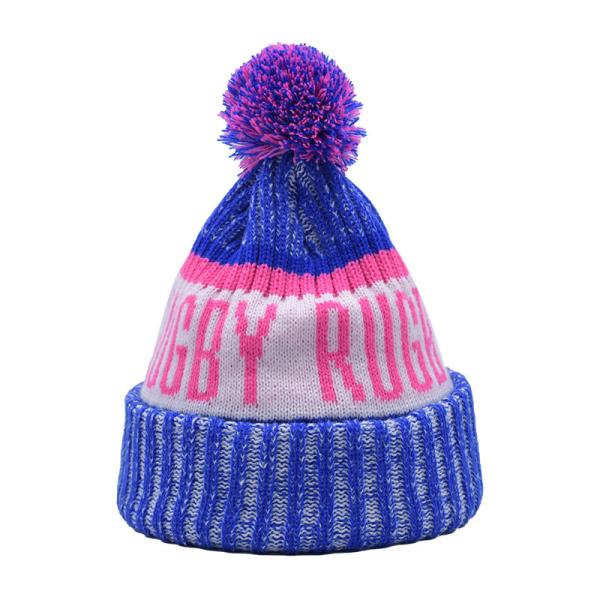 wholesale custom beanie/OEM own jacquard logo 100% acrylic pom pom Knitted Fashion OEM Beanie Hat Custom Winter Hat