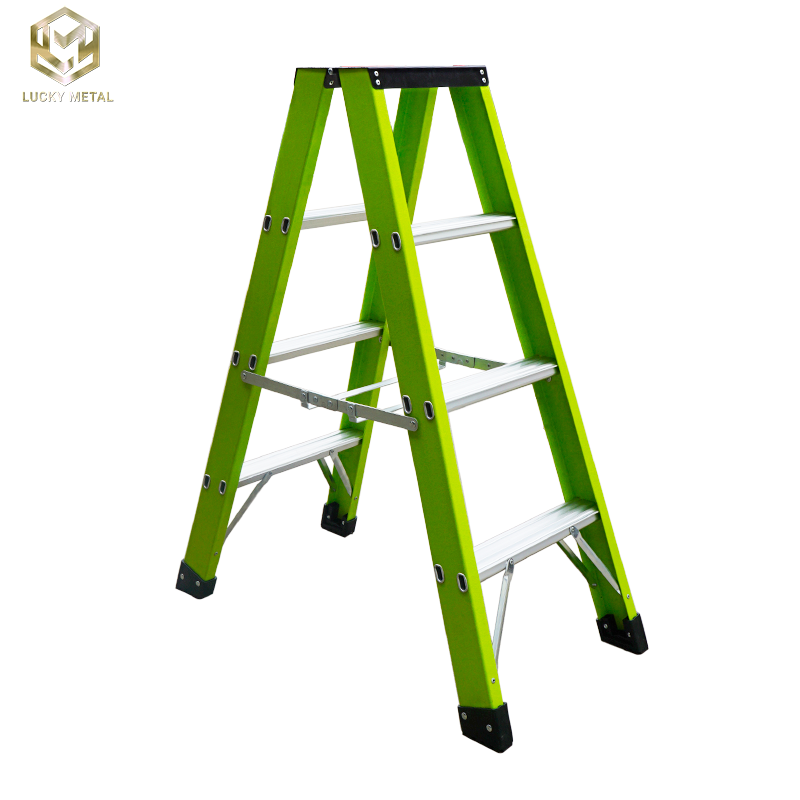 Green Color Strong Technical Platform Aluminum Telescopic 4 Steps A Shape Fiber Glass Ladder
