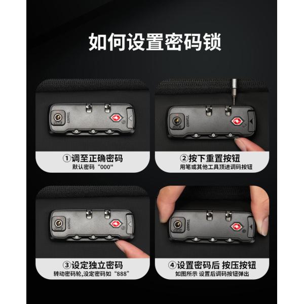 • Solid shell, waterproof material, large capacity space, scratch resistant, encrypted anti-theft lock, shoulder strap eva massage particles, honeycomb breathable back pad, back anti-theft zipper bag, adjustable shoulder strap