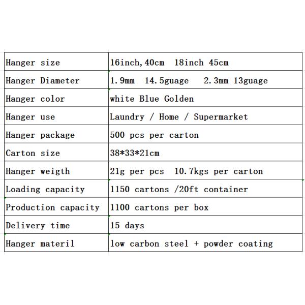 | Hanger weigth: | 21g per pcs 10.7kgs per carton |