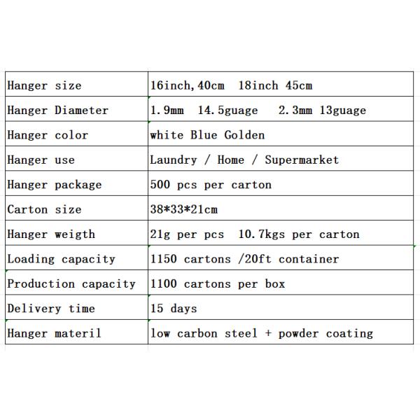 | Hanger weigth: | 21g per pcs 10.7kgs per carton |