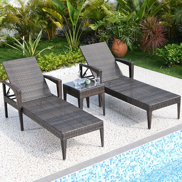 Modern Rattan Sun Lounger UV Resistant Chaise Lounge Chairs Outdoor