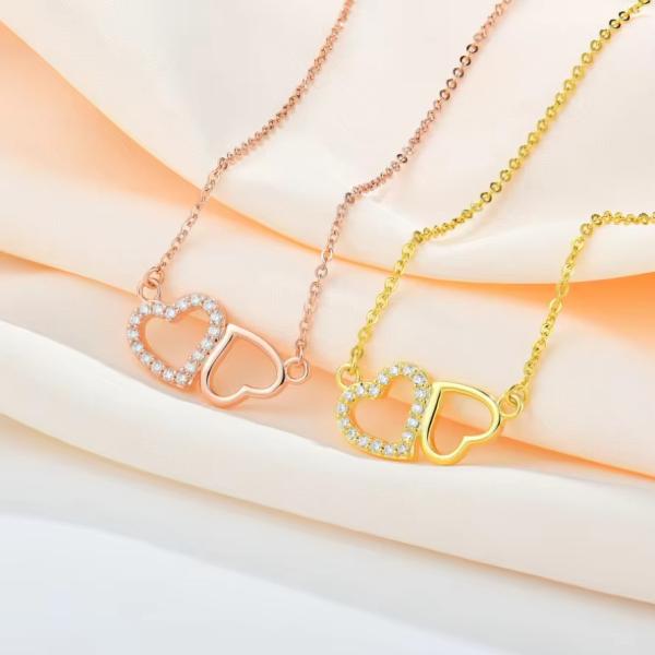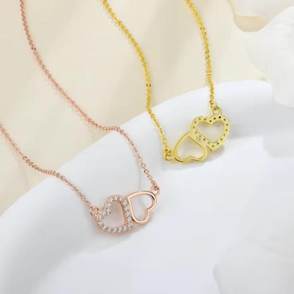 Necklaces Aesthetic: This high quality necklace is set with AAA+ Cubic Zirconia then Plated in 14K Gold giving it the long lasting luster and brilliance of fine jewelry. 18" in Length with a 2" Extenion.The double heart pendant is a timeless expression of love. This dainty necklace is incredibly versatile!With an adjustable length it can be worn as a choker necklace or alongside your other facorites!