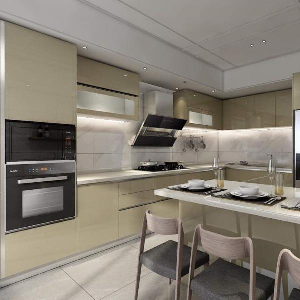 This modern kitchen cabinet comes in different door finishes, including Melamine, Lacquer, UV, and PET. These finishes give the cabinet a sleek and modern look, perfect for those who want to achieve a contemporary style for their kitchen.