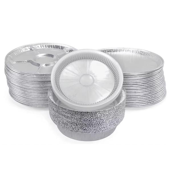 Round foil pizza pan/tray with plastic/foil/paper lid is round, the standard shape for pizza. They often have raised edges to hold ingredients and come with different lid options, including plastic, foil or paper lids. The lid fits securely onto the pan/tray.