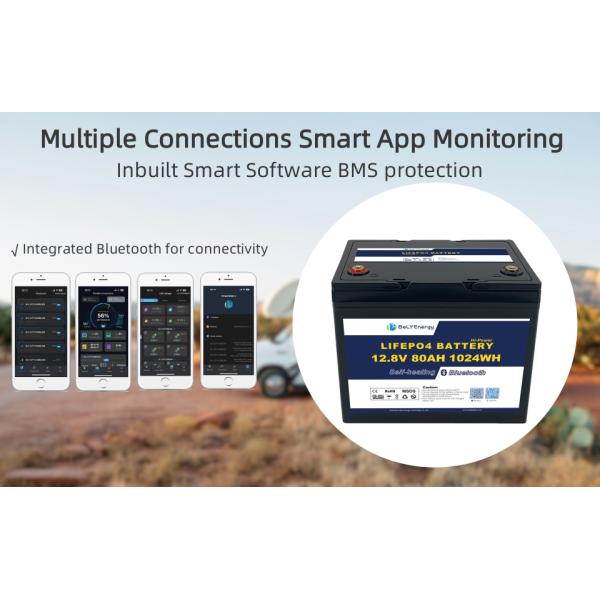 This solar battery lithium is a powerful 80ah 12v lifepo4 deep cycle lithium ion battery that features Bluetooth technology for easy connectivity.