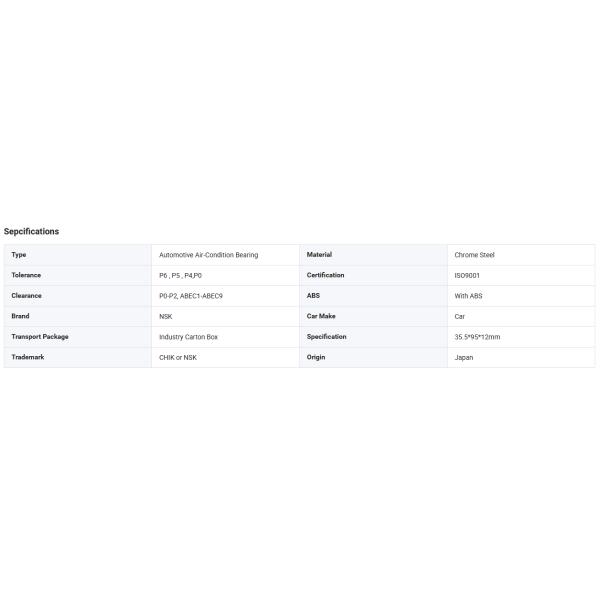Buy B35z-7e Automotive Nsk Deep Groove Ball Bearing 35.5*95*12mm at wholesale prices