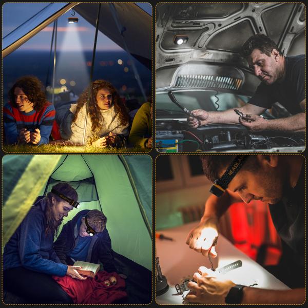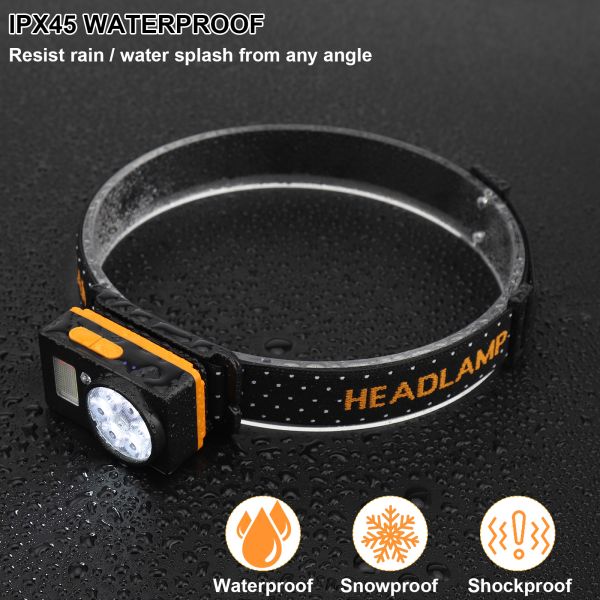 • MOTION SENSOR MODE - LED Headlamp Camping Accessories is equipped with the latest intelligent sensors. Even if wearing gloves, as long as the distance from the device is within 10 cm, you can quickly switch the ON/OFF by waving your hand in motion mode.