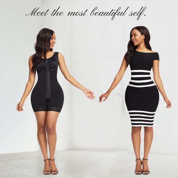 readjust to fit you best; 2. High elastic fabric at chest, lamination design, suitable for a variety of chest sizes; 3. 3-layer fabric design on abdomen for enhanced abdominal compression; 4. Open crotch design for easy bathroom access; 5. Dropping glue design at legs opening prevent rolling up; 6. Butt lifting design, enhances your own natural shape; 7. 3 eye and hook closure are adjustable for a great fit. | ||||||