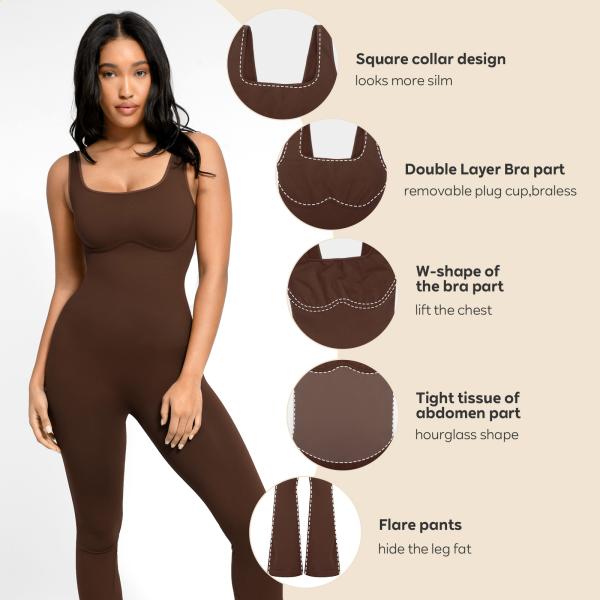 sexy; 2. The chest is double-layered, and the plug cup can be removed to eliminate the need to wear underwear; 3. There is a woven chest tight tissue on the inside of the chest to support the chest; 4. Tight tissue is woven into the waist and lower abdomen to increase plasticity; 5. Seamless weaving technology, soft and comfortable high-elastic yarn, comfortable and shaping; 6. The tight tissue structure of the buttocks makes the buttocks more sexy; 7. Flared trouser legs hide thick legs. MT230227 1. Seamless flow, high elasticity, allows for free and comfortable stretching. 2. Double-layer fabric on the chest, prevents been seen through. 3. Removable cup pads for bra less style. 4. Reinforced waist and abdomen construction, enhances the shaping effects. 5. Adjustable straps. 6. Ribbed texture, stylish outfits. 7. Two-piece set, it will go with a cardigan. 8. Perfect for office, daily casual, home, vacation, and other occasions. | ||||||