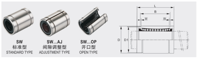 Linear motion bearing consists of an outer cylinder,ball retainer,balls and two end rings. The ball retainer which holds the balls in the recirculating trucks in held inside the outer cylinder by end of rings.those parts are assembled to optimize their required functions.the outer cylinder is maintainedsufficient hardness by heat treatment,therefore it ensures the bushings projected travel life and satisfactory durability.we can offer a full line of linear motion bearing:the standard,the clearance adjustable type and the open.double retainer and flanged type, these products are easy to assemble,easy to replace.