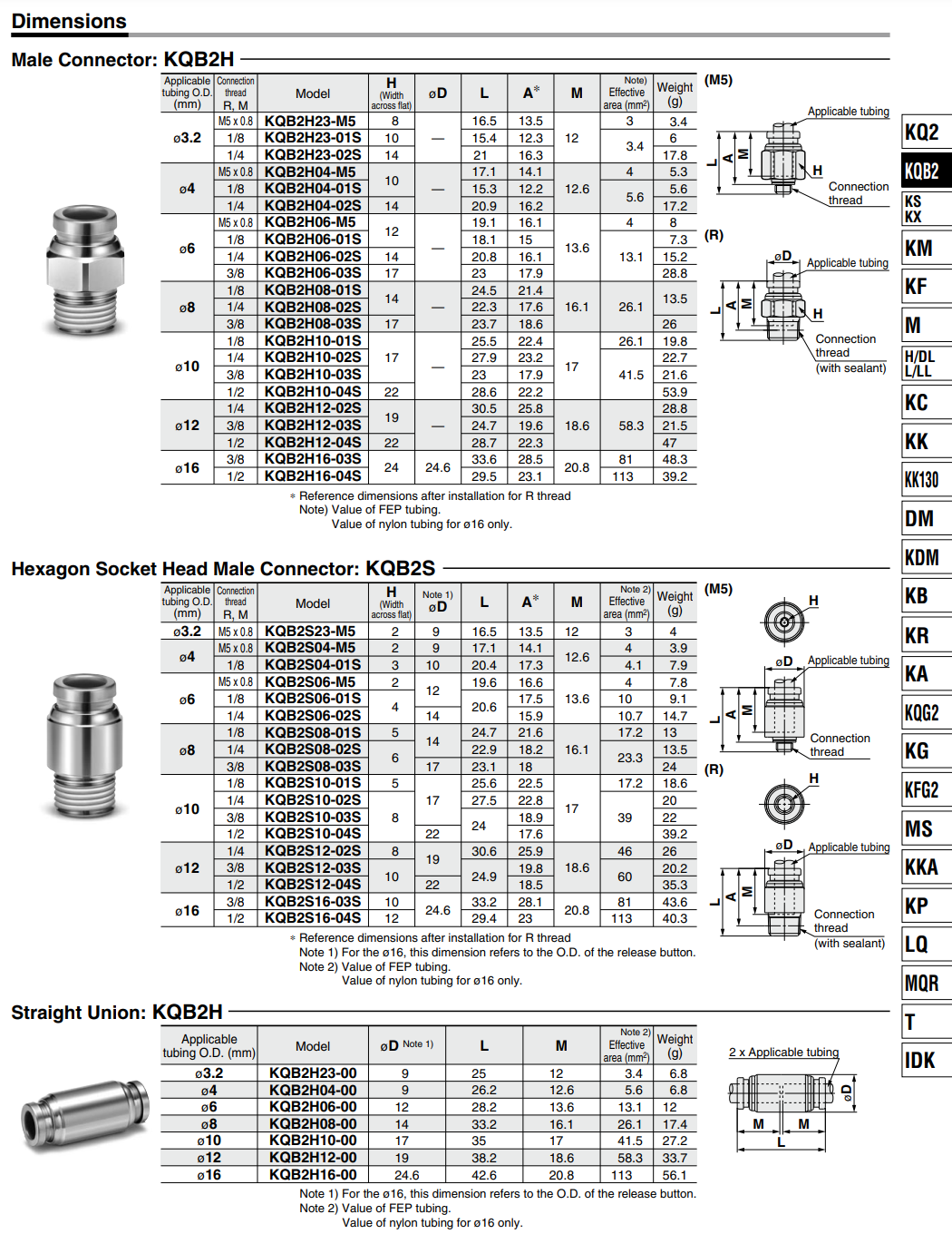 KQB2 Series Metal One-Touch Fittings,Metric Size (G Threads)