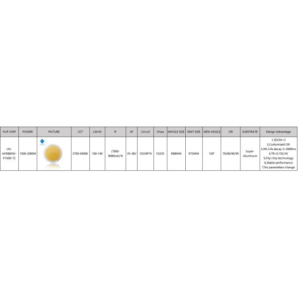 Flip LED CHIPS 2000W 2700-6500K 140LM/W 7000-9000mA 35-38V With Outdoor Lighting LED CHIP products Specification: