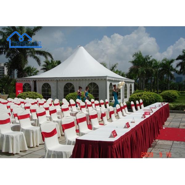 Customizable Features: Wedding Event Pagoda Tents can be customized with a range of features and accessories to enhance the wedding experience. This includes options for sidewalls, windows, doors, flooring, lighting, heating, air conditioning, and decor elements, allowing couples to create their dream wedding venue.
