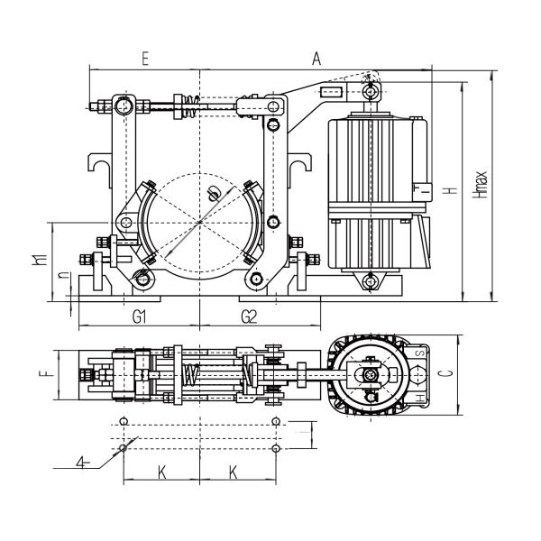 ■ The installation dimensions of YW series electric hydraulic drum