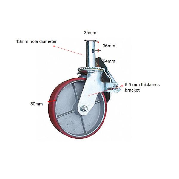 Standard stem casters,scaffolding wheels are designed for scaffolding frame. 500-600 lbs load capacity per caster, features an easy to engage total locks that locks both wheel and swivel and allow easy locking and repositioning.