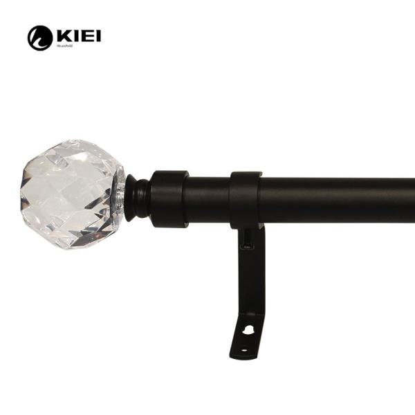 28mm Metal Curtain Pole With Acrylic Ball Shape Finials Extendable From 28-120 Inch Black Color