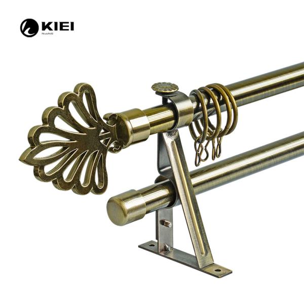 Double Antique Brass Color Iron Pipe Curtain Rods With 19/19MM Diameter For Living Room