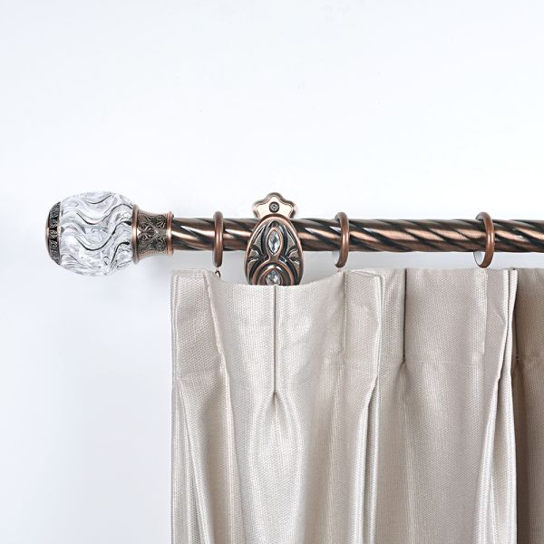 This series of curtain rod set belongs to the classical style. The twisted iron curtain rod and its classical crystal decorative head also add a different feeling to the surrounding environment. The surface of the rod is plated, which is beautiful and durable at the same time. The curtain rod set includes a customizable curtain rod, bracket, and two decorative curtain heads. The rod and bracket have a weight capacity of about 8-10 kg, which can support most curtain fabrics. Of course, this is only a conventional configuration and the product parameters can be changed according to your requirements.