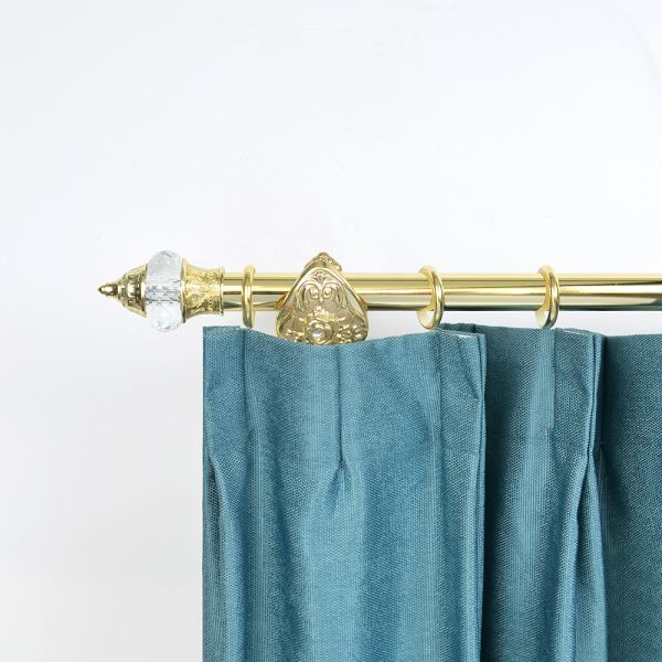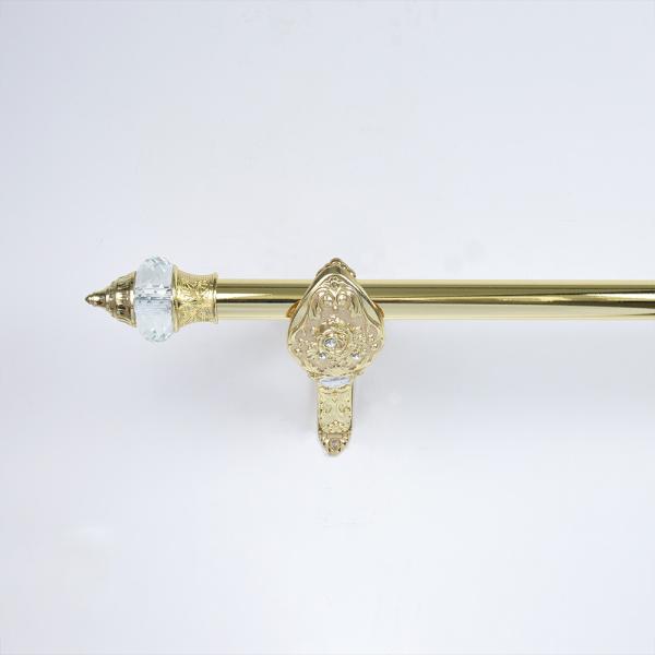 Golden 28mm Sharp Cap Crystal Finial 3m Iron Curtain Pole With Aluminum Single Bracket