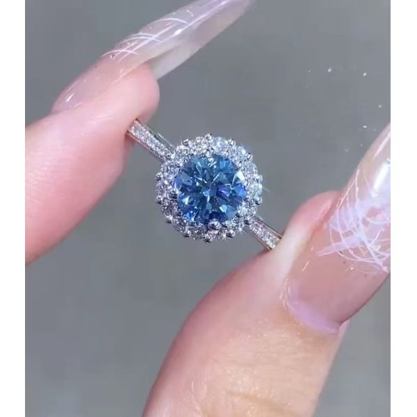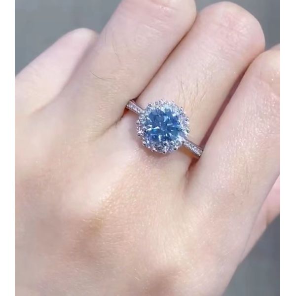 Lab Diamond Jewelry Blue round Cut Engagement Ring Wedding Ring Fancy Diamond Rings