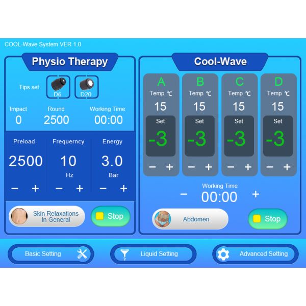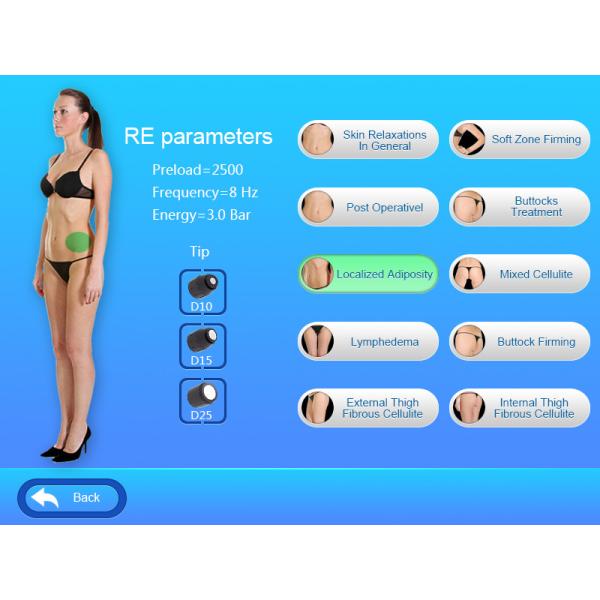 Shock wave interface: 10 body part program has been set for easy selection to use . for different parts, the system will automatically recommend the frequency,energy and tip .
