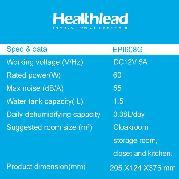 | Name | Dehumidifiers for EPI608G with High Efficiency1.5L water tank, daily dehumidification rate for Baby Bedroom and Closet | ||||