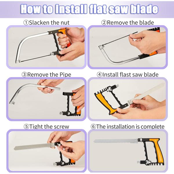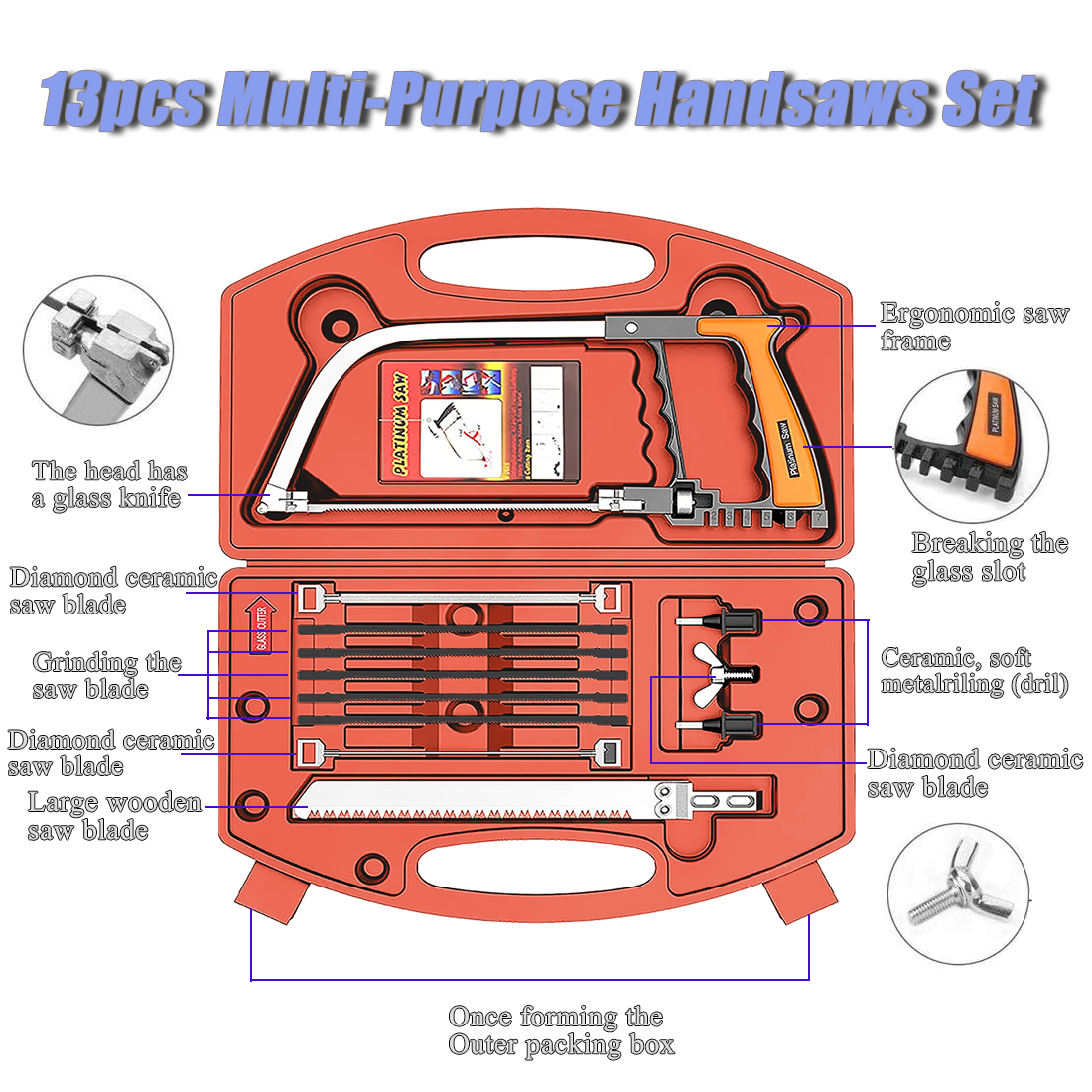 Widely Application: This Multifunction Hacksaw set is widely use for cutting general wood, tile, glass, soft metal, plastic, ceremic hunting, camping, pruning and diy