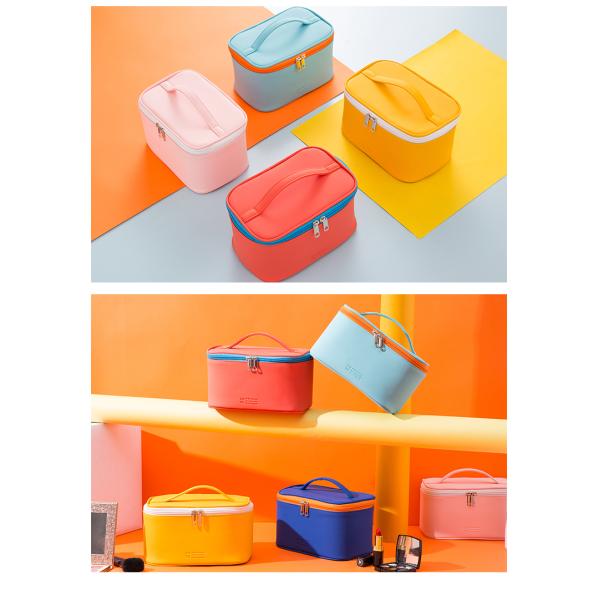 【Waterproof Fabric & Durable Design】This cosmetic bag is made of durable, waterproof, soft touch PU leather and polyester lining, which is easy to wipe down if anything spills. And extra thick padding of the cosmetic bag will offer your cosmetics protection. Comfortable & Scratch-resistant hand strap design, you can take the makeup bag easily. Zippered up with smooth double zippers which are easy to open.