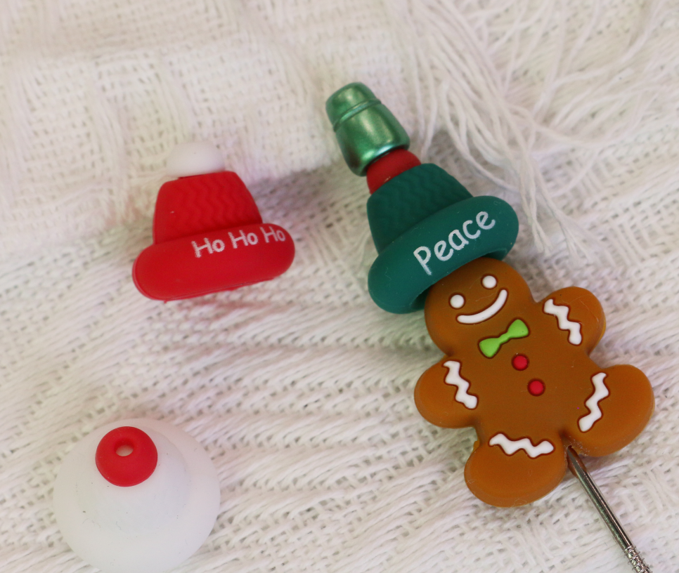 | Silicone Beads 3D Christmas Hat Focals | 100% Safe Silicone |