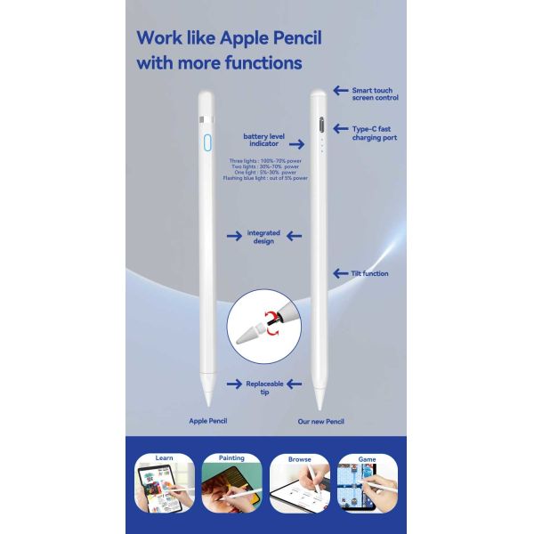 | Nib | POM Material, Replaceable Refill, Same For Original One, Can Be Replacement For Apple Pencil |