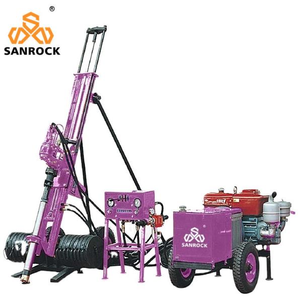 SRQD120 DTH rock drill is a new type of energy-saving and high efficiency drilling equipment.It is widely used in medium and small mines and road construction,national defense,water conservancy and the stone in the engineering of deep hole drilling operation,also is the indispensable drilling open-pit mining equipment ,especially is suitable for rugged terrain;The machine is with compact structure,convenient operation,high speed,high efficiency,good machine detachable,and transportation is extremely convenient.