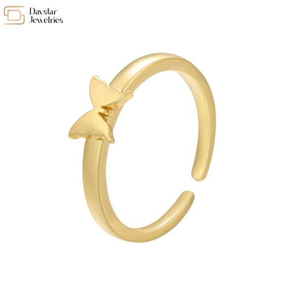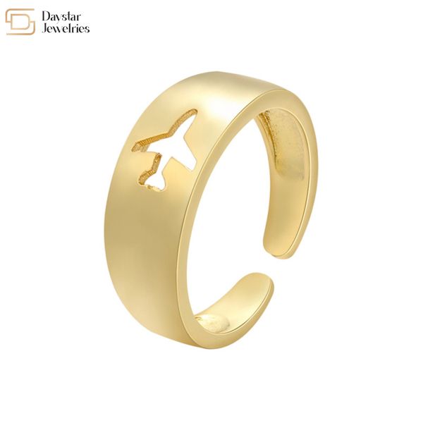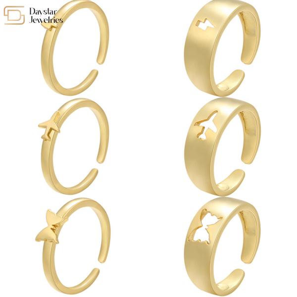 Gold Couple Rings 14k Plated Jewelry Butterfly Lightning Plane Rings Adjustable Opening Brass Rings