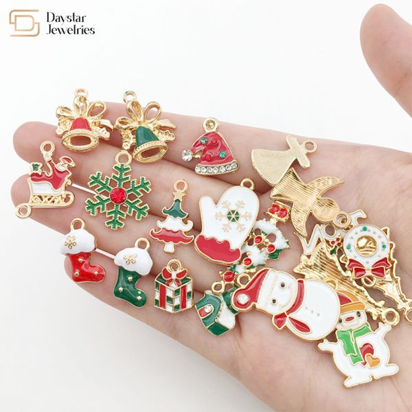 Christmas Pendant Gold Enamel Metal Charms Diy Jewelry Making