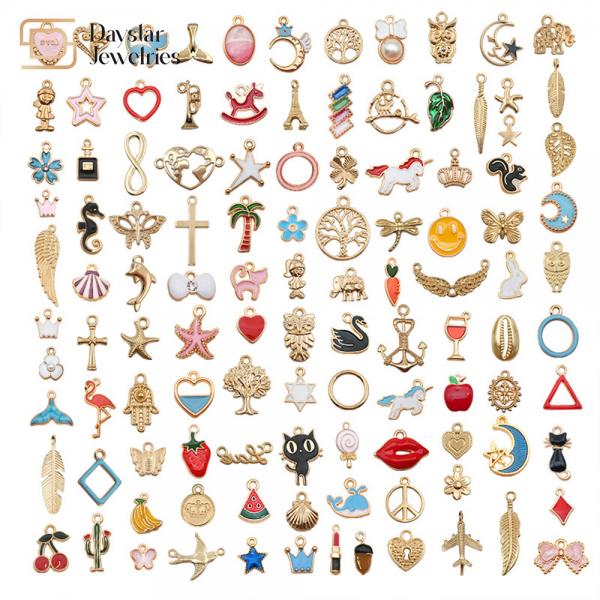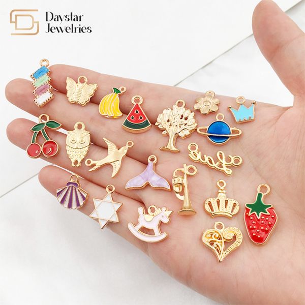 ✅ Rich Styles: Mixed wholesale metal charms are beautifully designed and many different styles, such as stars, moons, hearts, fruits, etc. These enamel pendants will help you show your personality and make people shine.