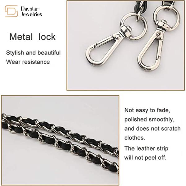 Replacement Crossbody Shoulder Metal Chain Leather Strap With Metal Buckle For Bag Purse Handbag