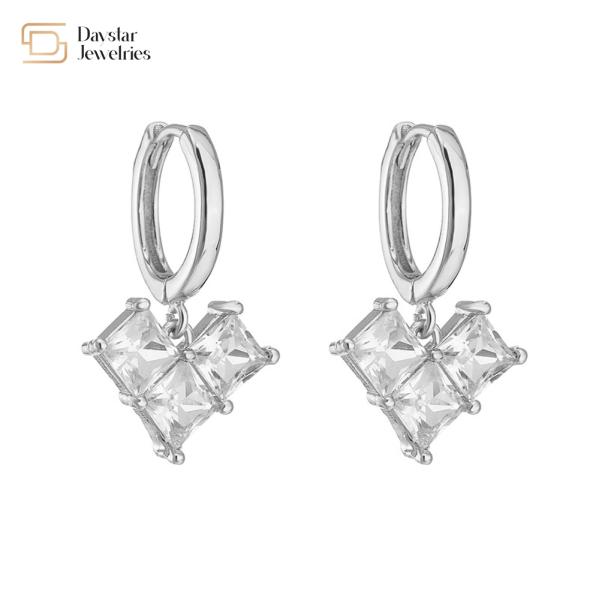 18k White Gold Plated Earrings Women Diamond Cubic Zirconia Heart Charm Pendant Hoop Earrings Wedding Jewelry