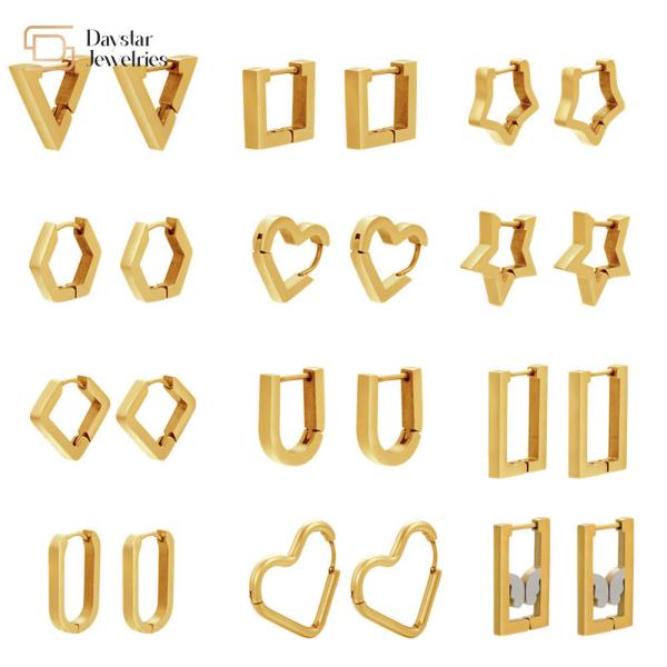 Stainless Steel Earrings 18k Gold Plated Jewelry Geometric Heart Hexagon Triangle Hoop Earrings For Women Men