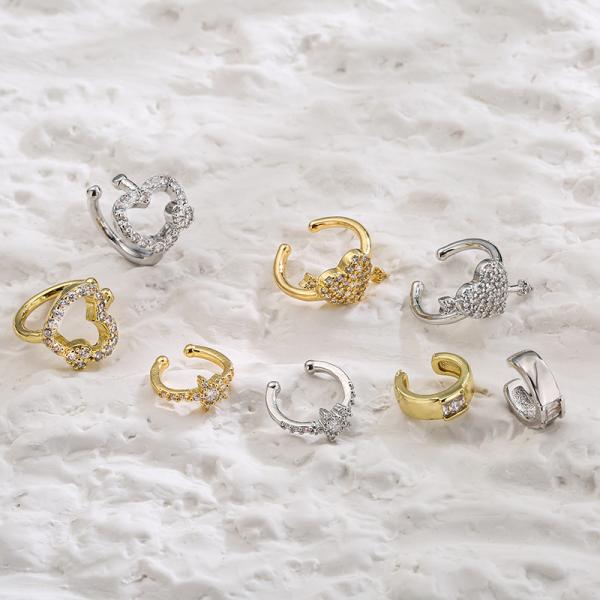 Gold Plated Jewelry Diamond Ear Clip 925 Silver Micro-Set Zircon Pentagram Heart Ear Bone Clip Earrings