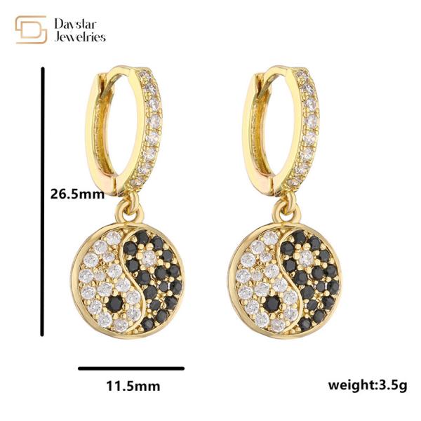 Diamond Zircon 18k Gold Plated Jewelry Yin Yang Pendant Hoop Earrings