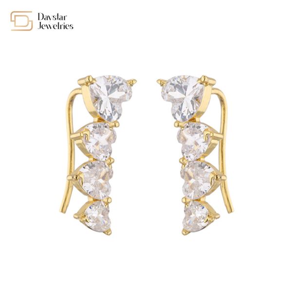 18k Plated Heart Charm Hoop Earrings Zircon Stone Ear Cuffs Jewelry