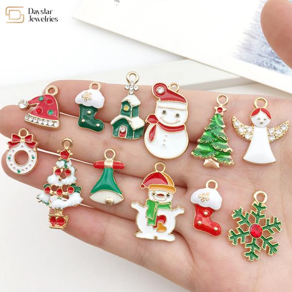 Christmas Charms Custom Gold Plated Enamel Pendant For Diy Jewelry Making Earrings Necklace Bracelet Charms