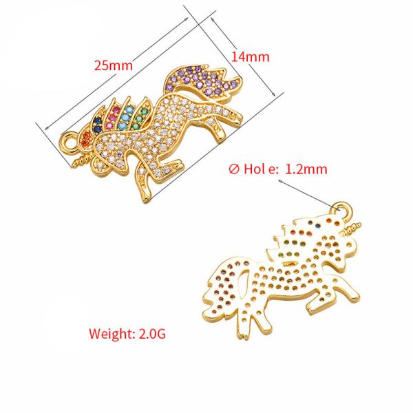18k Gold Unicorn Pendant Horse Charms Bracelet Necklace DIY Accessories Pave CZ Zircon Charm For Jewelry Making