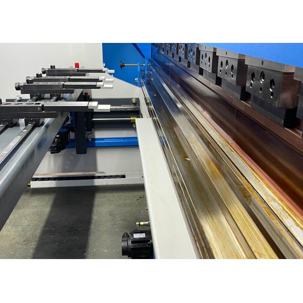 Multi-axis bending machines are all electro-hydraulic servo models, with 4+1 axes including X, Y1, Y2, R+ V. The R-axis is used to control the up and down movement of the rear gauge, which will increase product processing accuracy.