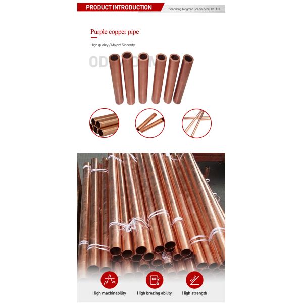 The Copper Seamless Pipe produced by TONGMAO is a kind of unitary copper tube, with the certification ISO9001 and a minimum order quantity of 500KG. It has a competitive price of USD$7-8/KG, and is packed in wooden case/carton/other standard shipping packing, and it usually takes 7-10Days for delivery. The payment terms can be T/T,L/C,etc, and the supply ability is up to 50tons/Month. It is available in Red/Yellow and can be processed by Extrusion, Rolling, Etc., in straight:1-6M; Coil Pipe: 15M/20M/30M/50M length. Its surface can be Polishing, Bright, and its thickness available is 0.3-3mm, 2-30mm/Customized.