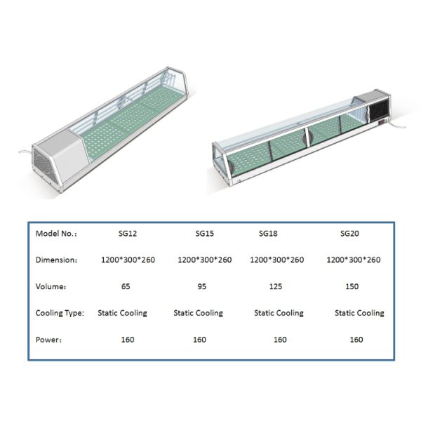 | SG12 | 1200*300*260 | 65L | 160W | 480USD |