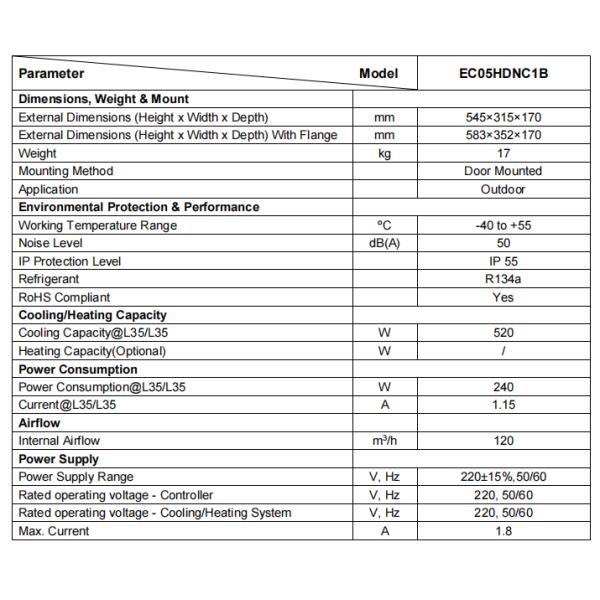 500W Cooling Capacity Outdoor Cabinet Air Conditioner 220VAC Power Supply With 500W Heating Capacity